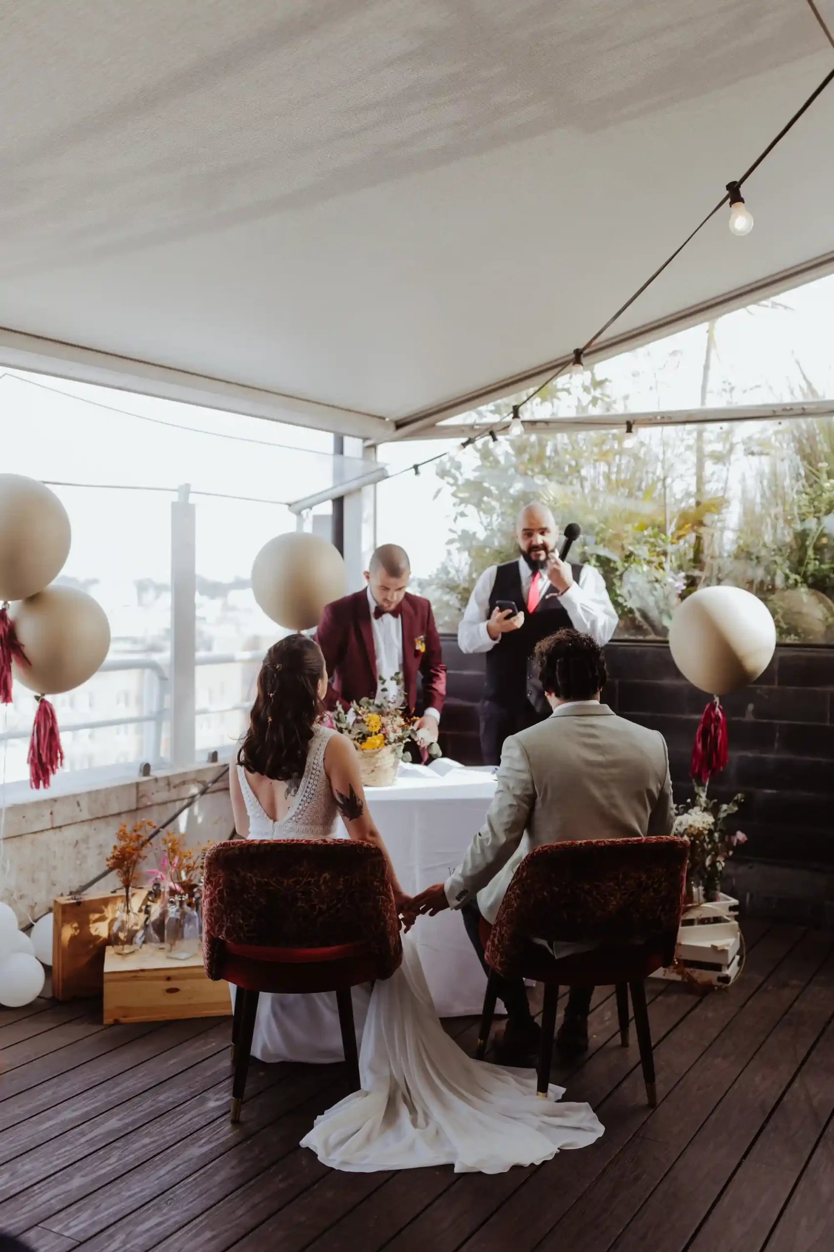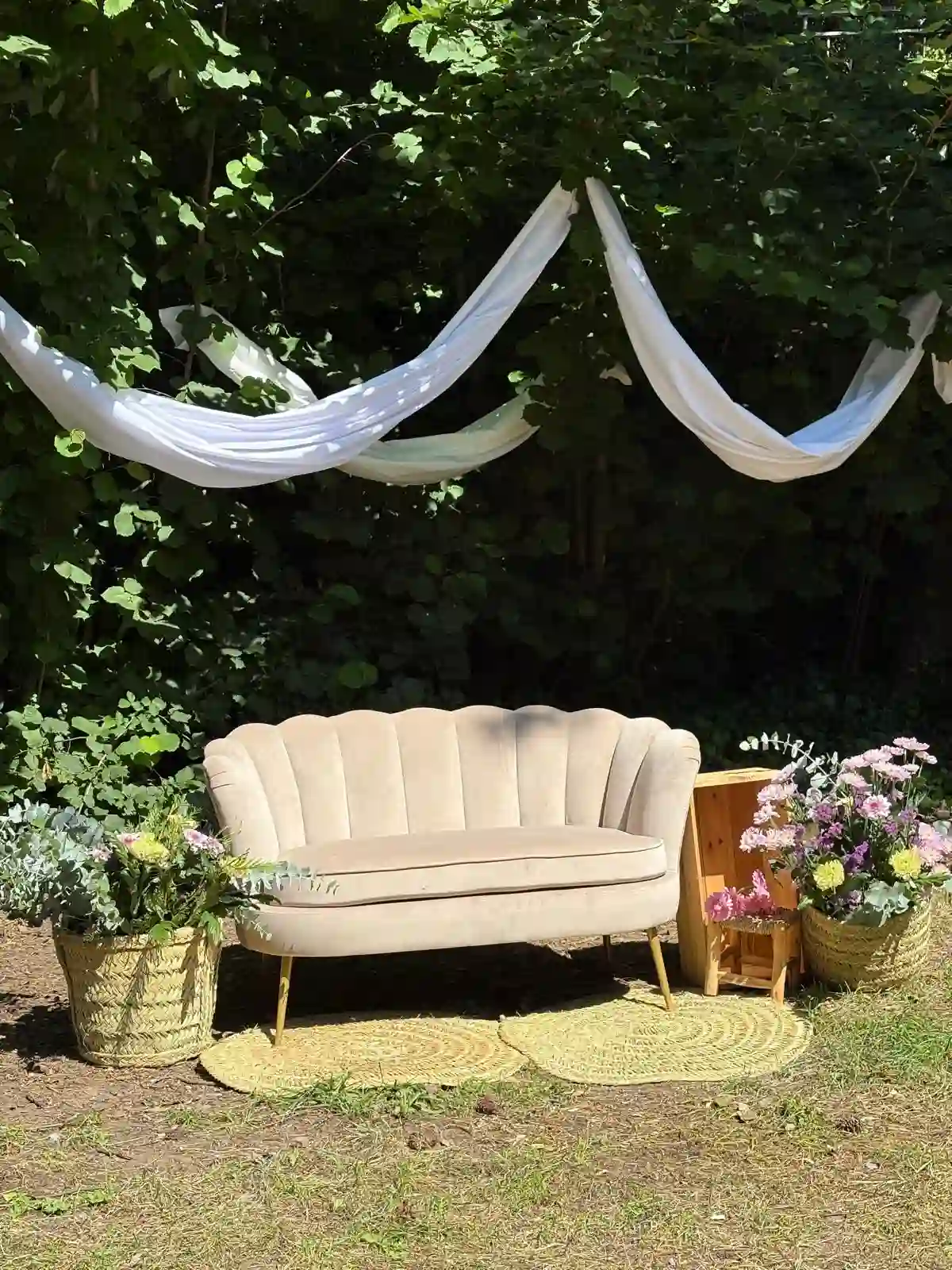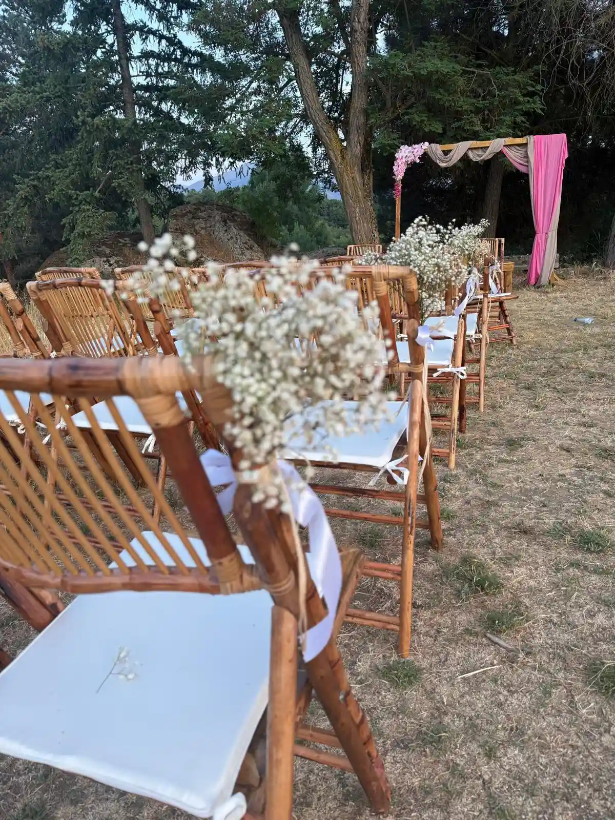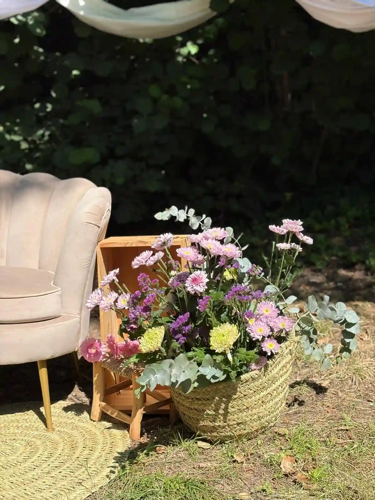 Diseñamos la entrada, altares, pasillo, sillas, con arcos de flores, pétalos, telas, etc. Además, ofrecemos diferentes tipos de ceremonia; unión de arena, de fuego y/o Maestro/a de ceremonias.
